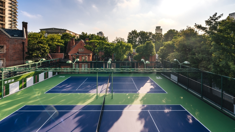 闹中取静的乌鲁木齐南路,穿过拥有邬达克建筑的“网红”党群服务中心——徐汇区天平街道“66梧桐院”邻里汇,徐汇区少体校崭新的网球场映入眼帘。这里堪称上海体育的“冠军摇篮”, 姚明、刘翔、吴敏霞、王励勤等众多优秀体育人才从这里走出。这里也见证了上海网球运动的发展历程,刘运智等一批早期网球运动员在此接受了最初的训练,张之臻等名将从这里走向世界。