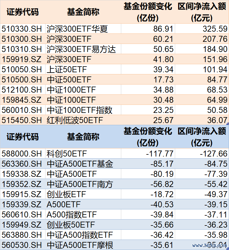 其中,沪深300ETF华夏净流入325.59亿元,4只规模较大的沪深300ETF合计净流入870.21亿元。