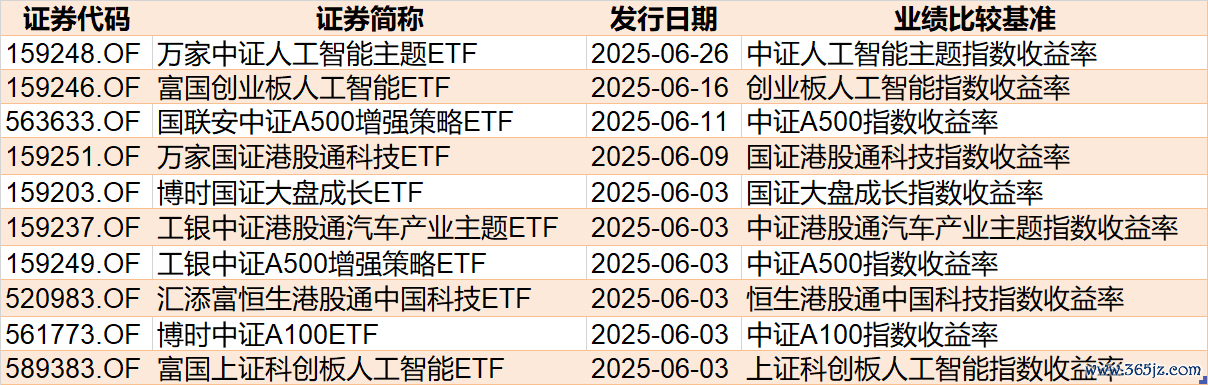 目前已有6只ETF披露下周二发行,跟踪标的为大盘成长、中证A500、港股通汽车等。