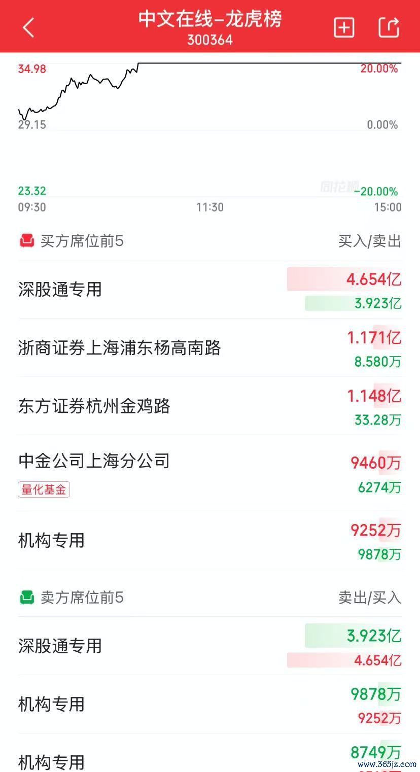 龙虎榜显示,中文在线被游资大举买入,买入金额排在前列的分别为深股通专用席位、浙商证券上海浦东杨高南路证券营业部、东方证券杭州金鸡路证券营业部、中金公司上海分公司。