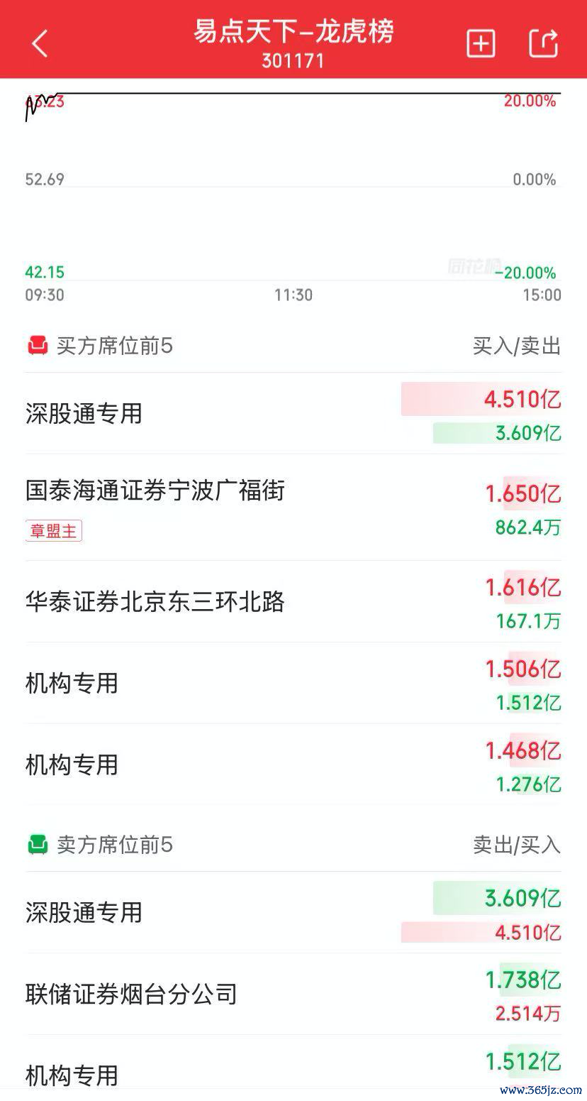 龙虎榜显示,易点天下被北向资金大举买入,深股通专用席位净买入9007.7万元;“章盟主”常用席位国泰海通证券宁波广福街证券营业部净买入1.56亿元。