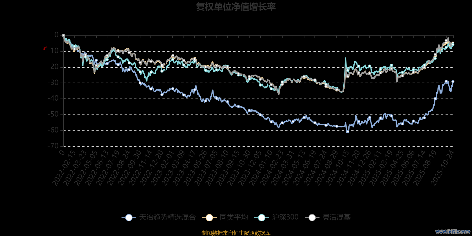 截至10月24日,天治趋势精选混合近三个月复权单位净值增长率为41.69%,位于同类可比基金67/1287;近半年复权单位净值增长率为60.91%,位于同类可比基金84/1287;近一年复权单位净值增长率为63.40%,位于同类可比基金79/1287;近三年复权单位净值增长率为2.68%,位于同类可比基金918/1286。